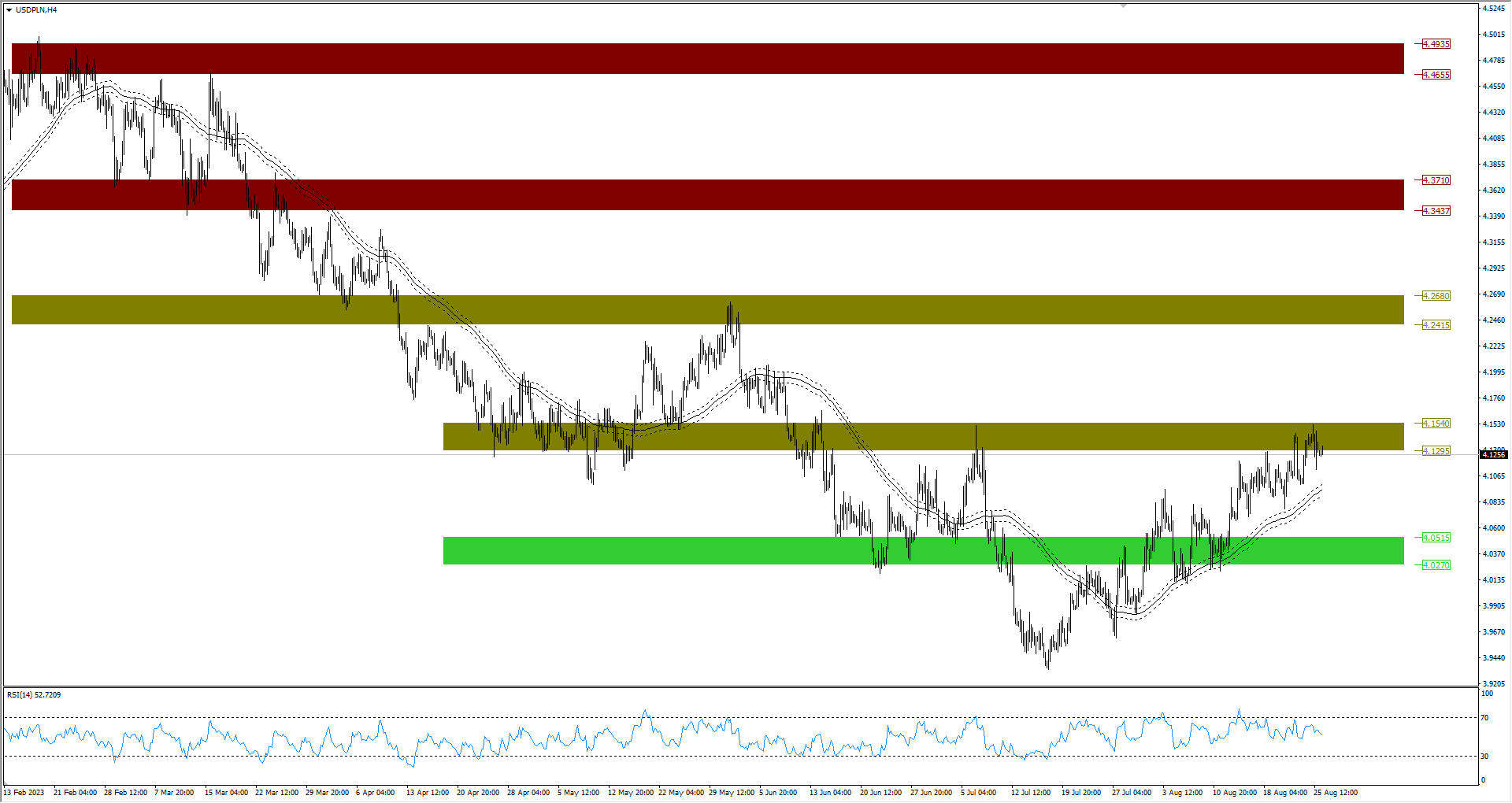 Obecnie dolar znajduje się tuż poniżej strefy 4,1295-4,1540 zł. Jest to obszar oporu, który rynek będzie chciał zapewne w najbliższym czasie testować.