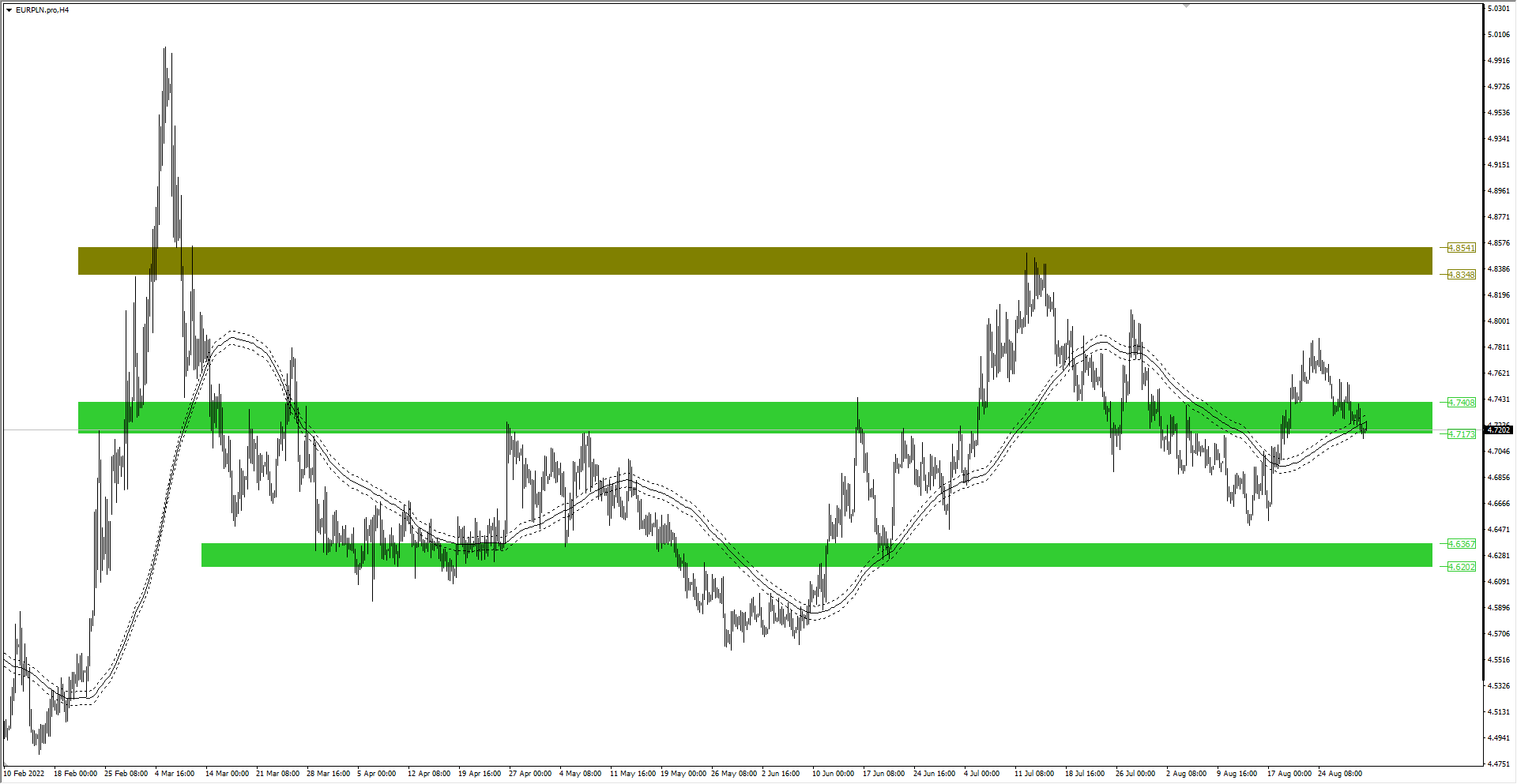 Para walutowa USD/PLN również schodziła do niższych zakresów wczoraj. Notowania amerykańskiego dolara w stosunku do złotówki zeszły do okolic poziomu 4,69 PLN. Na tym zakresie znajdowała się średnia, którą para USD/PLN postanowiła sprawdzić. Dolar wygenerował silny impuls wzrostowy z okolic średniej i aktualnie kurs znajduje się na 4,73 PLN.