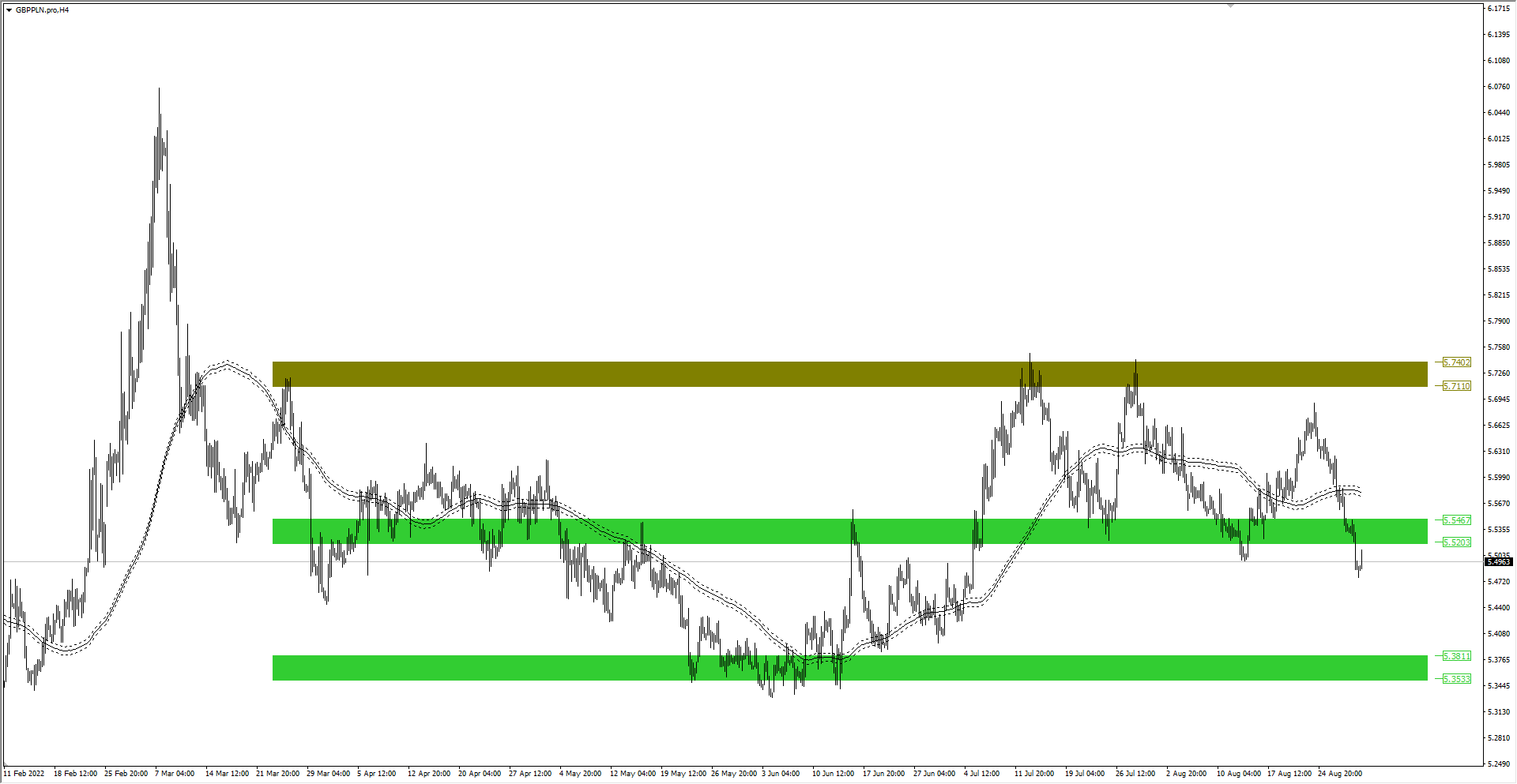 Jednak funt względem złotego aktualnie odrabia. Kurs powrócił powyżej 5,50 PLN i wydaje się zmierzać w stronę strefy cenowej: 5,52-5,54 PLN. Reakcja na tym zakresie okazać się może kluczowa w najbliższym czasie.