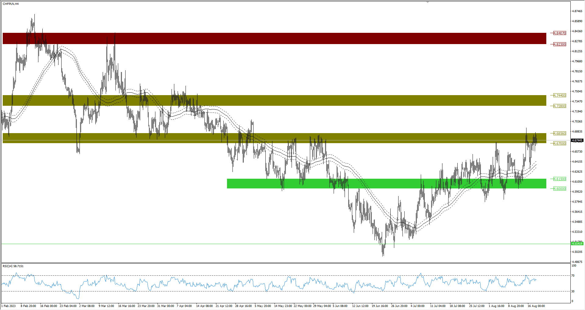 Frank męczy się z poziomem 4,6700-4,6860 zł, jednak wydaje się, że może wreszcie postawić „kropkę nad i”, dzięki czemu pokona strefę oporu.