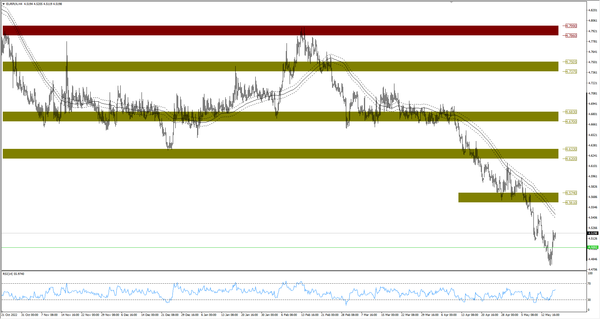 Europejska waluta, ostatnio uwikłana w straty wobec złotego, wreszcie znalazła siłę. Rynek pary EUR/PLN wykonał odbicie i euro zyskało 3,5 grosza w środę. Notowania powróciły do 4,52 PLN. Dzisiaj od rana euro i złoty walczą nieco niżej. W dniu 18.05.2023 rano euro kosztuje 4,51 PLN.