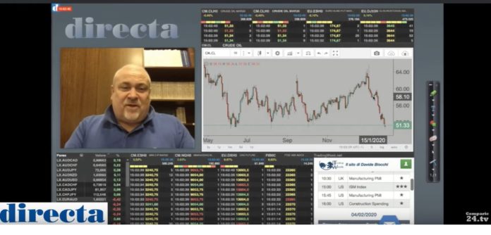 Trader Directa Davide Biocchi opowiada o koronawirusie, który dalej zbiera żniwa na rynku finansowym, powodując spadki np. wycen akcji oraz ropy. Ropa spadła w ostatnim czasie do wsparcia na poziomie 50 USD. Jeśli pokona ten pułap, wówczas możliwy jest spadek do 43 dolarów za baryłkę – zauważa Biocchi.