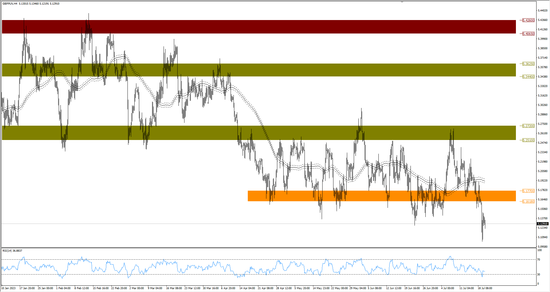 Funt szterling środowym zejściem wyznaczył nowe tegoroczne minimum. Notowania pary GBP/PLN znajdują się na dołkach majowo-czerwcowych i jeżeli teraz nie pojawi się reakcja, funt może zejść do 5,10 PLN.