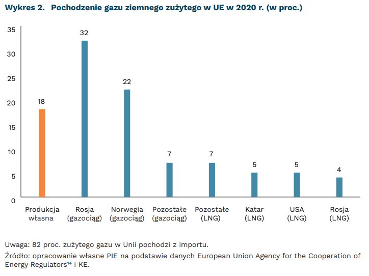 Mimo, że według danych za 2020 rok, produkcja własna gazu ziemnego zużywanego w Unii Europejskiej stanowi zaledwie 18 proc., zaś import z Rosji aż 36 proc. (32 proc. – gazociąg i 4 proc. gaz LNG), to zdaniem szefowej KE jesteśmy w stanie sobie poradzić bez gazu z Rosji. Jako alternatywę wskazuje ona import gazu z innych źródeł, na czele z gazem LNG.